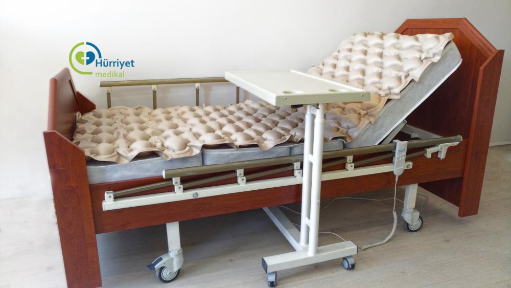 2 Motorlu Ahşap Hasta Karyolası + Havalı Yatak + Yemek Masası + Dört Parçalı Yatak